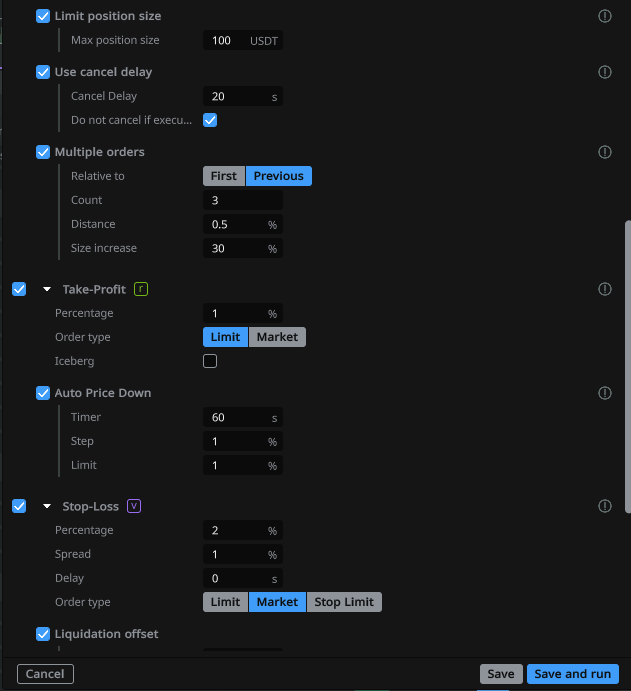 Это даёт трейдеру возможность комбинировать автоматизацию и ручной контроль, создавая собственные сценарии усреднения или выхода из позиции.